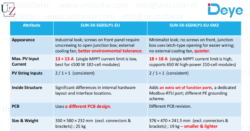 SOL-5K-SG04LP1-EU-SM2 et SOL-5K-SG05LP1-EU inverters solaris obsonatores diversis necessitatibus innituntur in consilio, effectu et compatibilitate;